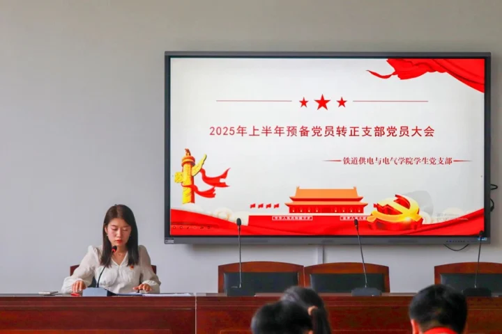 为进一步加强党员队伍建设,增强党组织的凝聚力和战斗力,5月30日12时40分,铁道供电与电气学院学生党支部“2025年上半年预备党员转正支部党员大会”于2号实训楼209顺利召开,本次会议由学生党支部组织委员陈祎珊主持。
